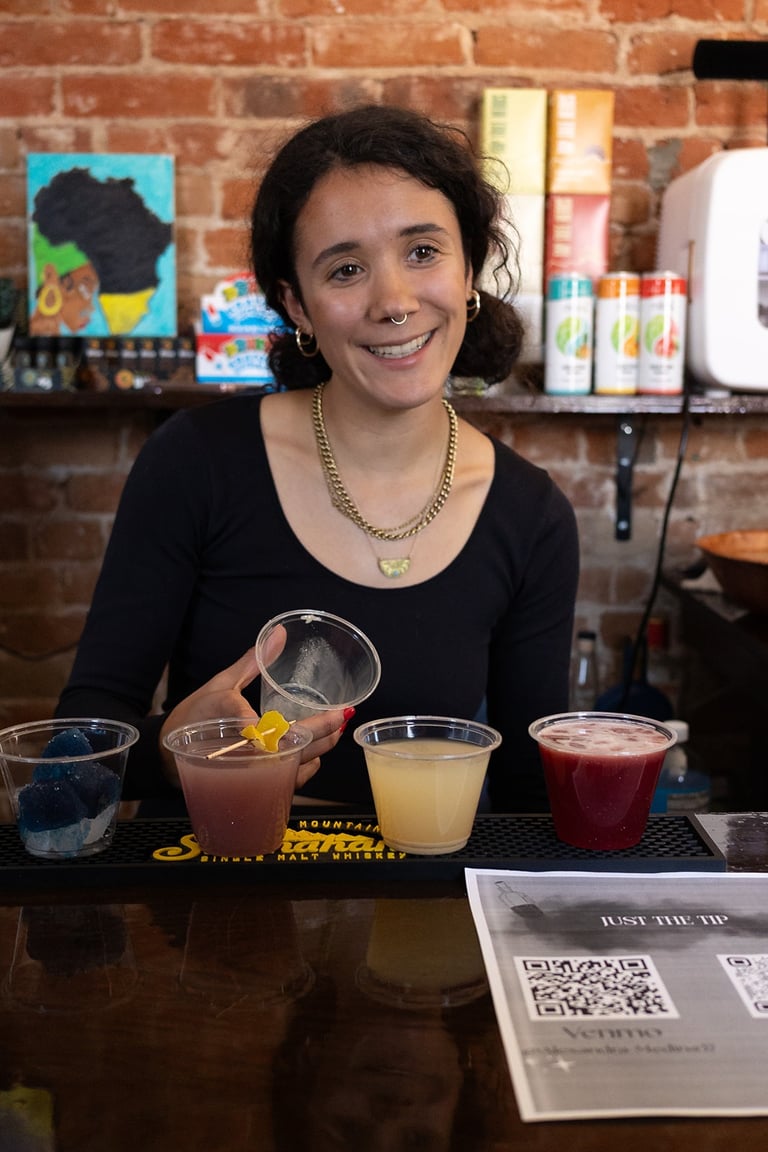 Alé is the owner of Kiki's Bartending Service LLC, where she combines her love for life’s magic with her passion for creating unforgettableexperiences. A traveler at heart, she draws inspiration from nature and the mountains, bringing that beauty and wonder into every celebration.